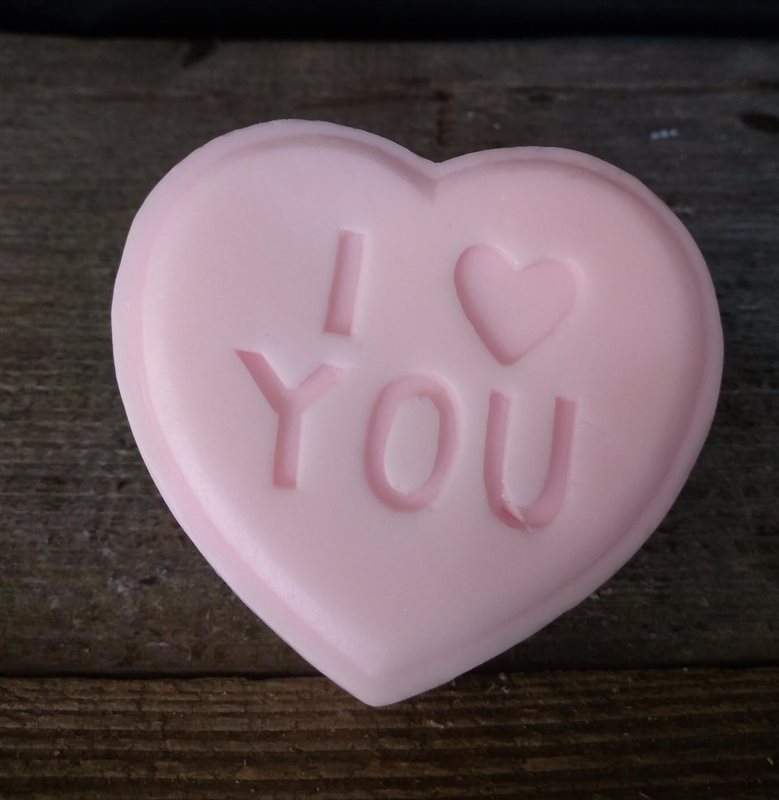 Roze hartjeszeep: I Love you.
