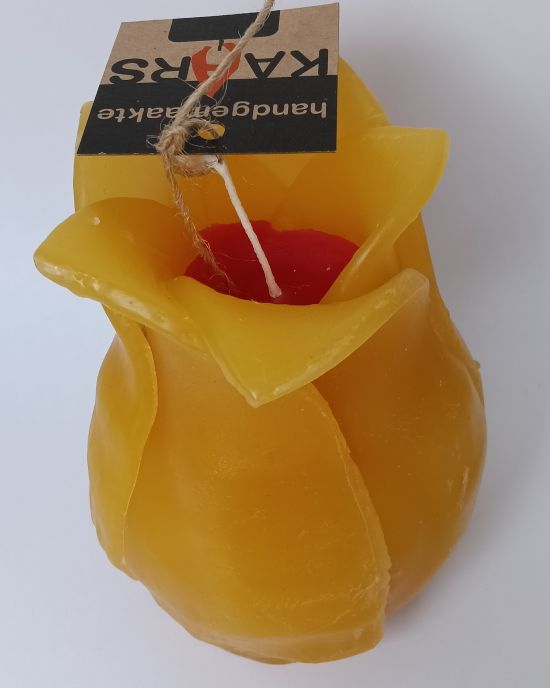 Deze tulpkaarsen worden allemaal met de hand gemaakt. Elke kaars is uniek. Het formaat is ca. 12 x 8 cm.