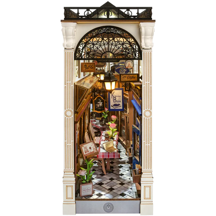 De ambiance van vroeger, waar vind je dat nog? Van die gezellige retro-cafeetjes, knusse vintage winkeltjes en geweldige antiekshops. Nou, als je in de buurt bent, in Parijs stikt het van zulke oergezellige straatjes. Sterker nog, in veel ervan kun je droog shoppen omdat ze glazen koepeldaken hebben. En deze passages zijn al honderden jaren oud en nog helemaal in oude stijl gehouden. Robotime vindt dit ook geweldig en bouwde een book nook voor jou met een mix van Galerie Vivienne, Le Passage des Panoramas en Le passage du Grand Cerf. Wij nemen je mee naar het Paris van weleer!