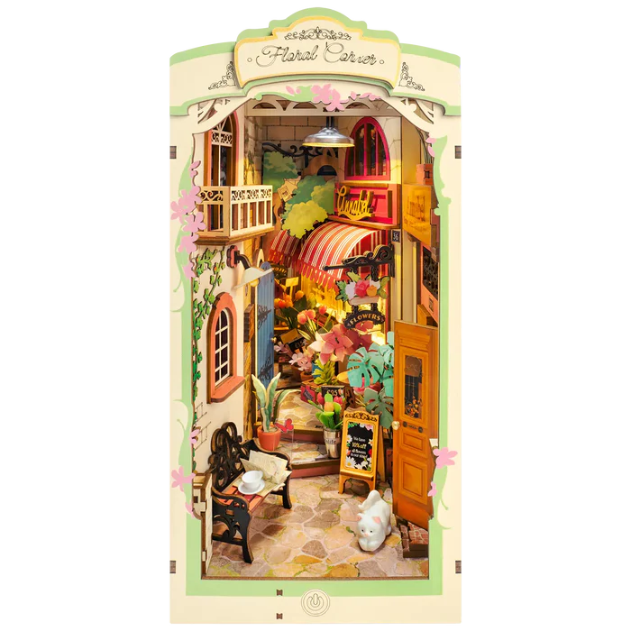 Koop bloemen bij Annabel in haar Bloemenhoekje book nook houten bouwpakket van Rolife