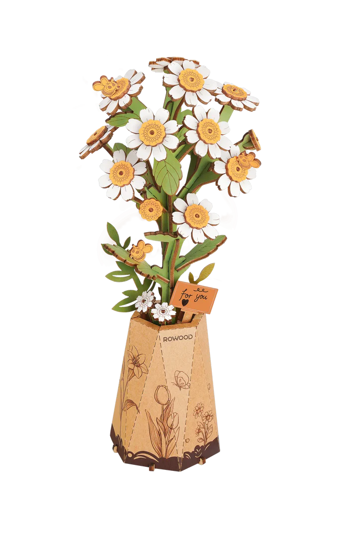 Wat vind jij van bloemen van hout? Ontdek het met houten bouwpakket kamille Rowood!