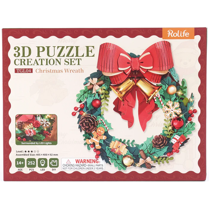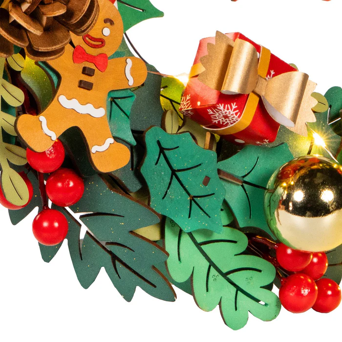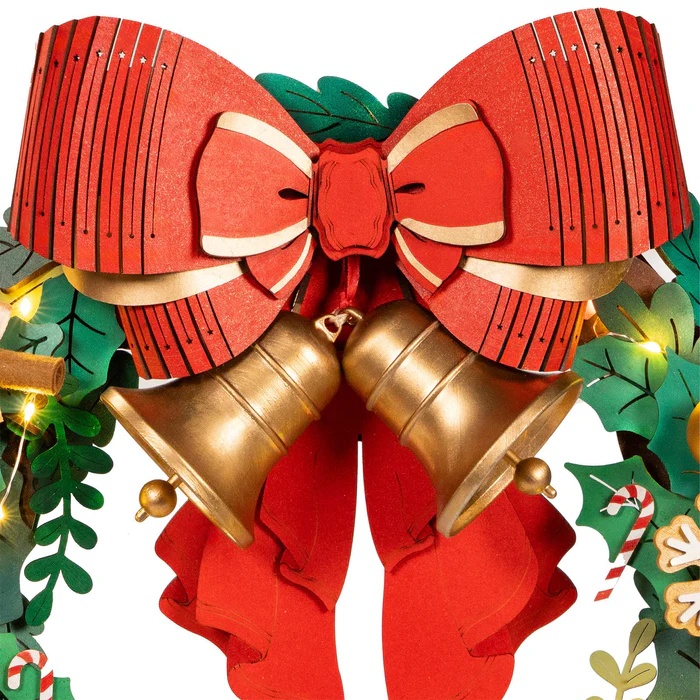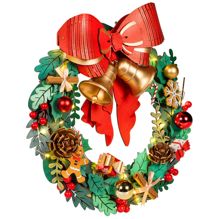 Kerstkrans bouwen? Magisch DIY-project houten bouwpakket Robotime in rood, goud en groen!