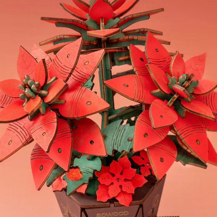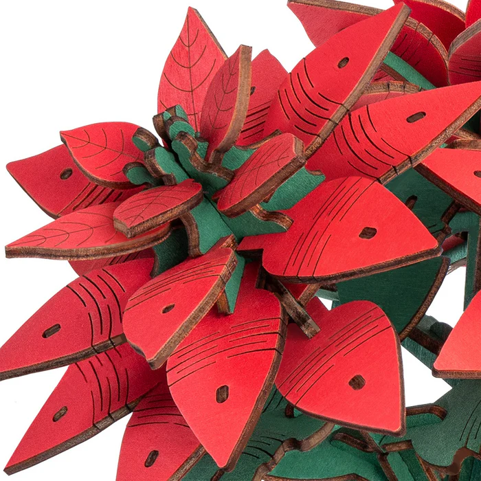 En het leukste? Jij maakt dit kerstwonder helemaal zelf. Met 153 lasergesneden puzzelstukjes klik je stap voor stap de bloemen en pot in elkaar. Het snap-fit-systeem maakt het bouwen gemakkelijk en bijna zonder gereedschap. Geen gesplinter, geen verf, gewoon pure bouwpret! Met een moeilijkheidsgraad van 2 van de 5 sterren is dit DIY kerstdecoratiepakket ideaal voor iedereen vanaf 8 jaar. Het eindresultaat is een vrolijke blikvanger van 14,5 x 14,5 x 17 centimeter hoog. Ook leuk om cadeau te geven door de “For you”-kaartjes die je erbij krijgt.
